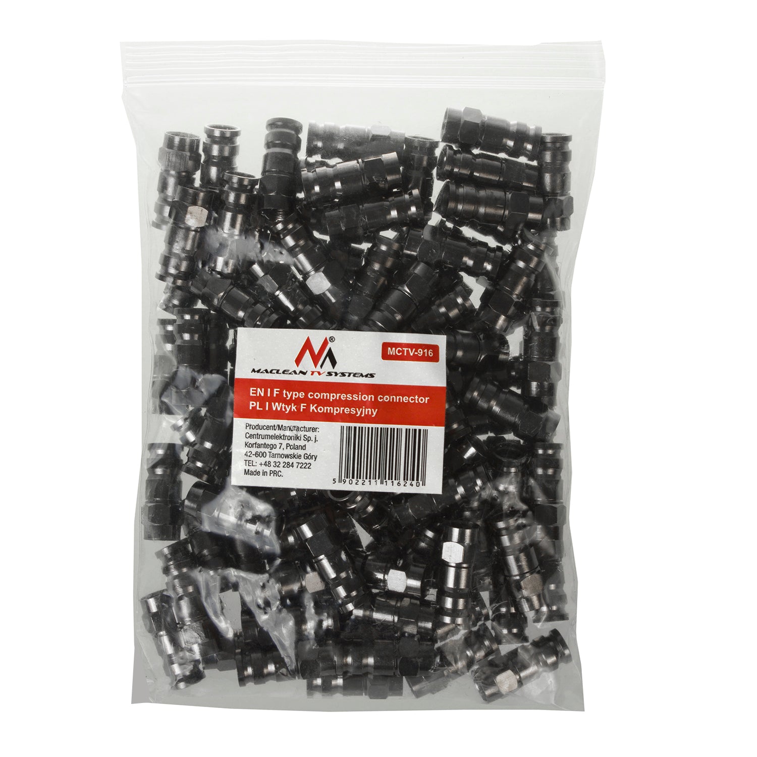 100x Maclean, F kompresný konektor, RG-6, profesionálny, nikel, čierny, MCTV-916