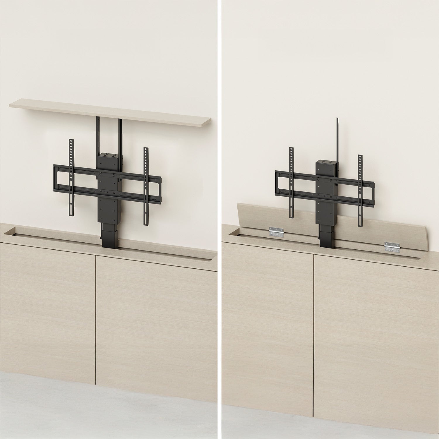- Držiak umožňuje elegantné ukrytie televízora v skrinke a jeho vysunutie len v prípade potreby