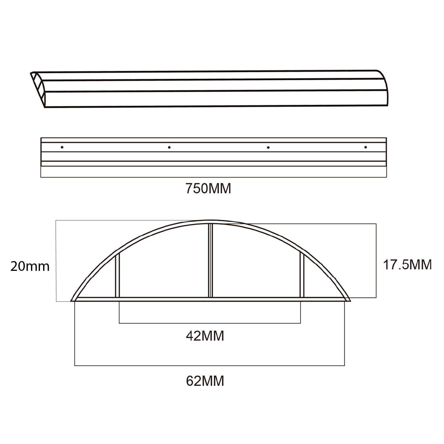 Hliníková krycia lišta na káble Maclean, 62x20x750 mm, biela, MC-814 W
