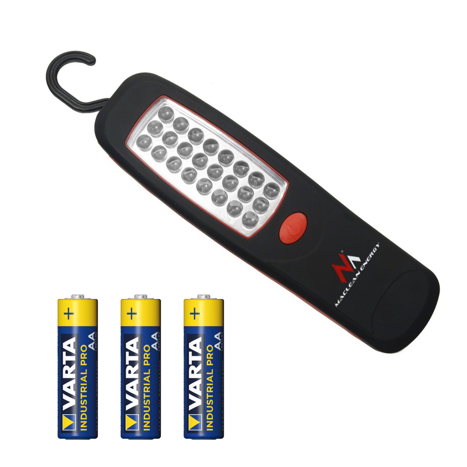 Lampa dielenská 24 LED Maclean, magnes, hak, 3xAA, MCE03 + 3x batéria Varta Industrial LR6/AA R-06