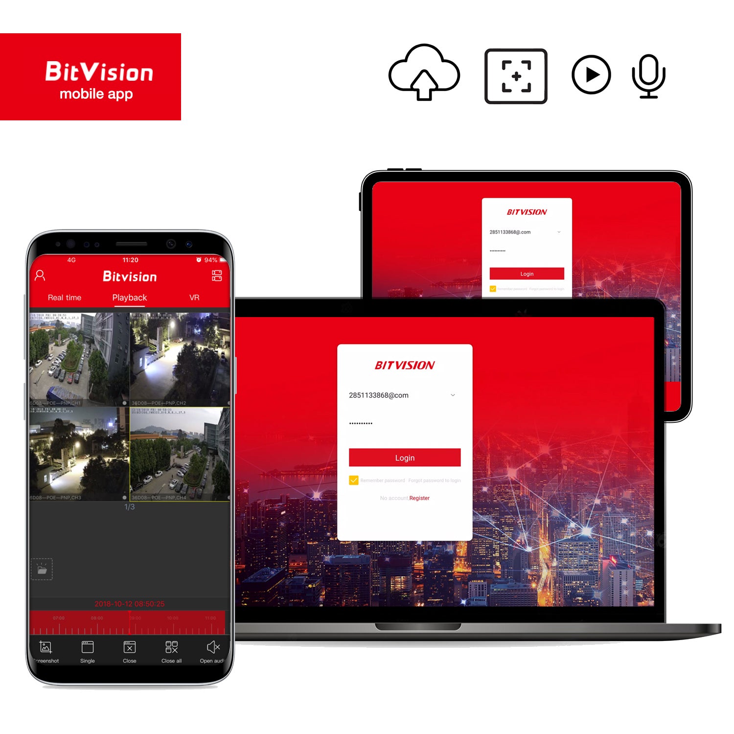 Kamera spolupracuje s aplikáciou Bitvision (dostupná v obchode Play a App-Store)