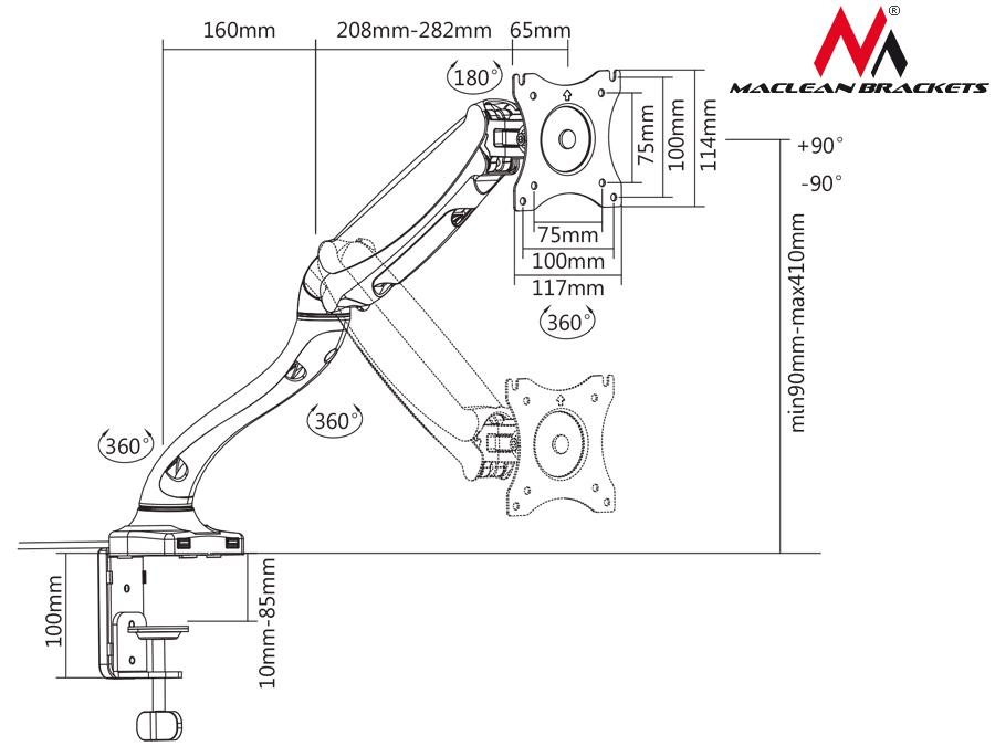 Držák pro LCD LED monitor 6kg USB 3.0 Maclean MC-673