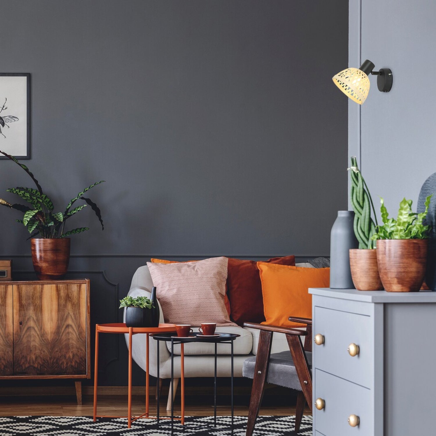 Ratanová lampa, ind.spot.E14 1xMAX15W, čierna - nástenná lampa
