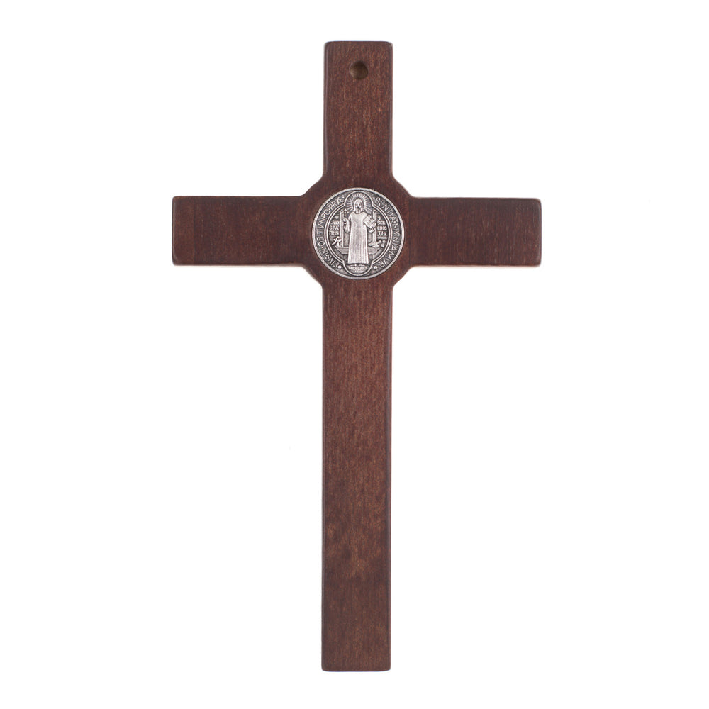 Drevený kríž svätého Benedikta zavesený s paškálom bronz 28x16x1,8cm
