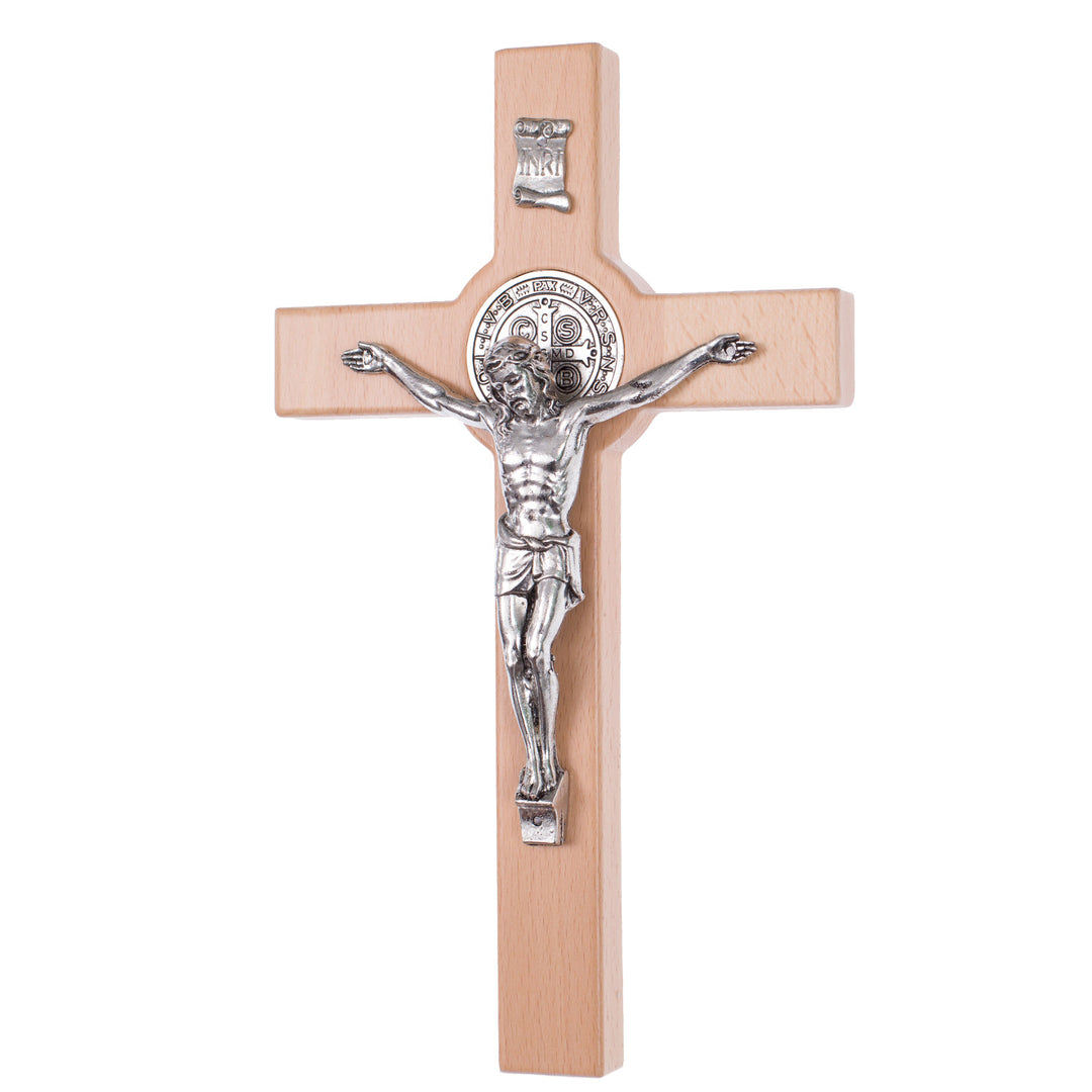 Drevený závesný kríž svätého Benedikta s paškálom prírodný 28x16x1,8cm