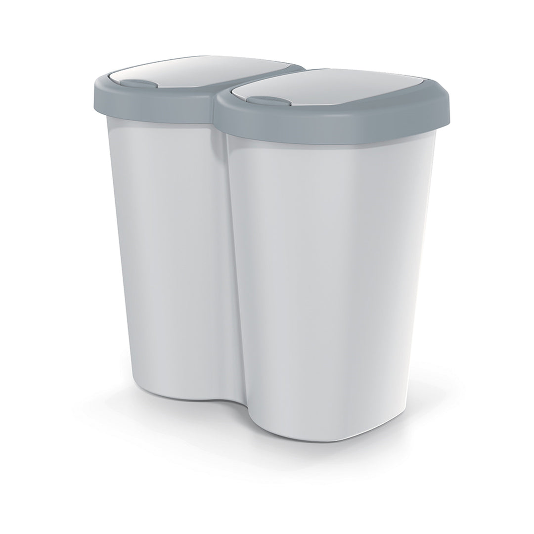 Kôš na odpadky Compacta R Duo, sivý/popolnato sivý, objem 40 l, jedna priehradka, dve veka, NDRF40-429U_427C