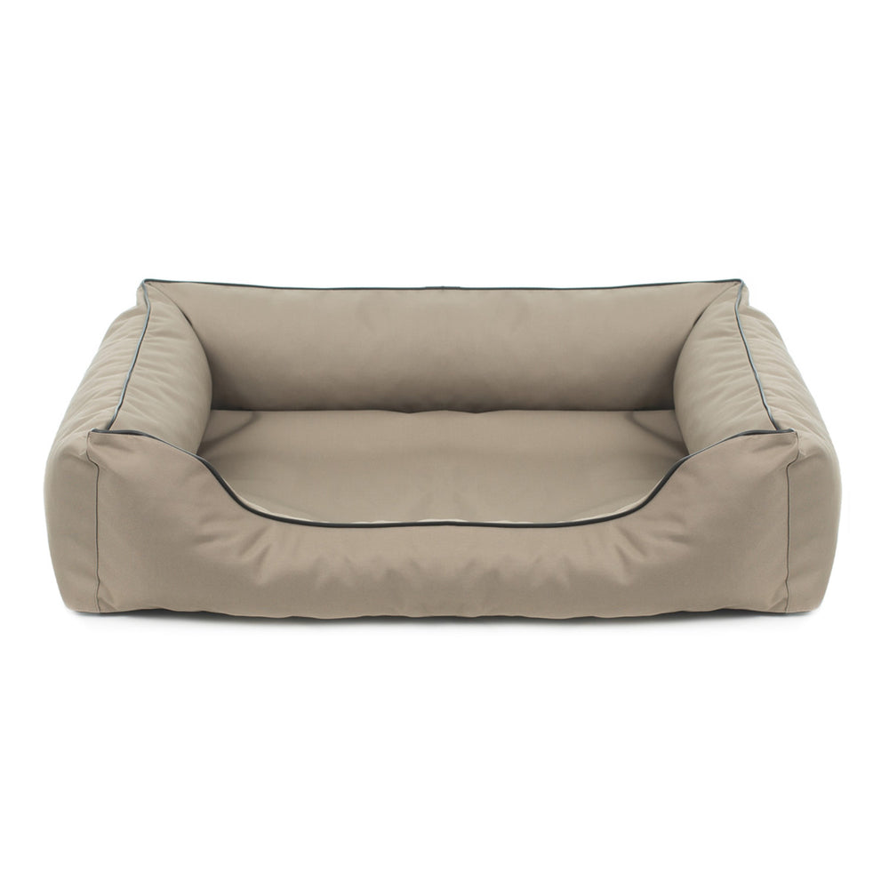 Ortopedický rozkladací pelech pre psov Valencia v béžovej farbe s čiernym lemovaním 100 x 75 cm