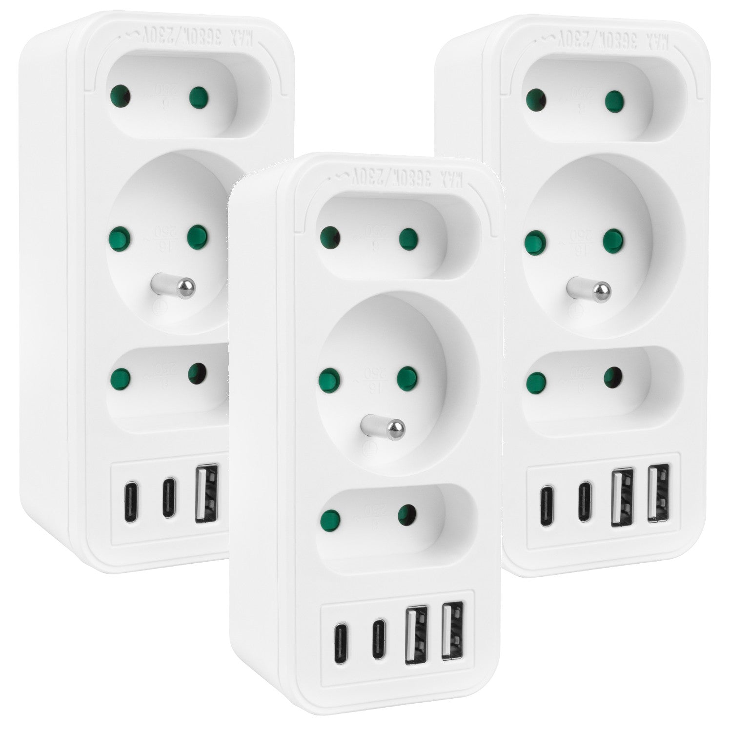 Prúdová zásuvka x3 + 4xUSB Maclean, 3-zásuvkový rozdeľovač, 2xUSB A, 2xUSB C PD 20W, 1x16A + 2x6A, MCE248 F/W, 3 ks