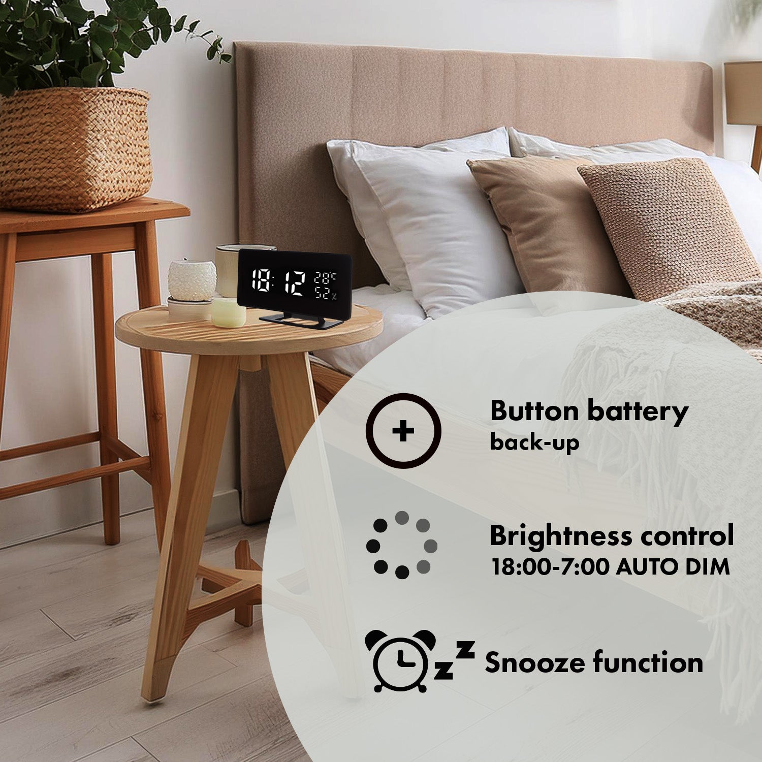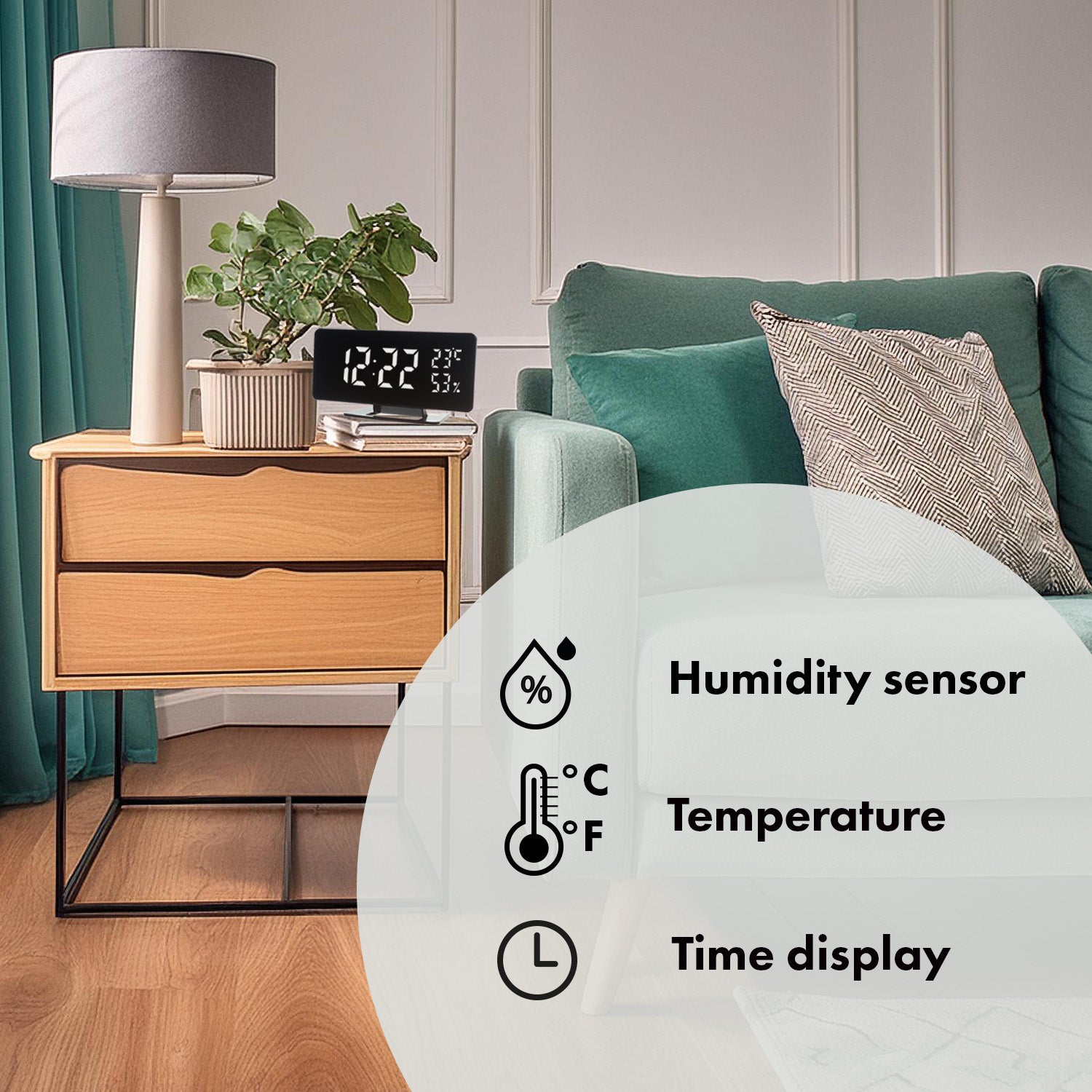 GreenBlue GB395 je moderné zariadenie s funkciami budíka, teplomera a vlhkomera. Hodiny sú vybavené veľkým, ľahko čitateľným displejom, ktorý dokonale zapadne do každého interiéru, či už je zariadený v klasickom alebo modernom štýle. Veľké číslice zaručujú čitateľnosť aj z väčšej vzdialenosti a zabudovaný snímač umožňuje zobrazenie okolitej teploty a vlhkosti.