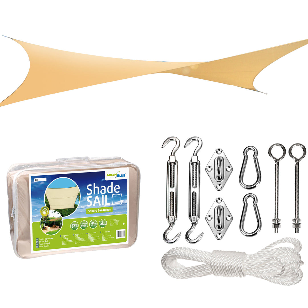 GreenBlue UV záhradná tieniaca plachta, polyester, 5 m štvorcových, krémová + montážna sada