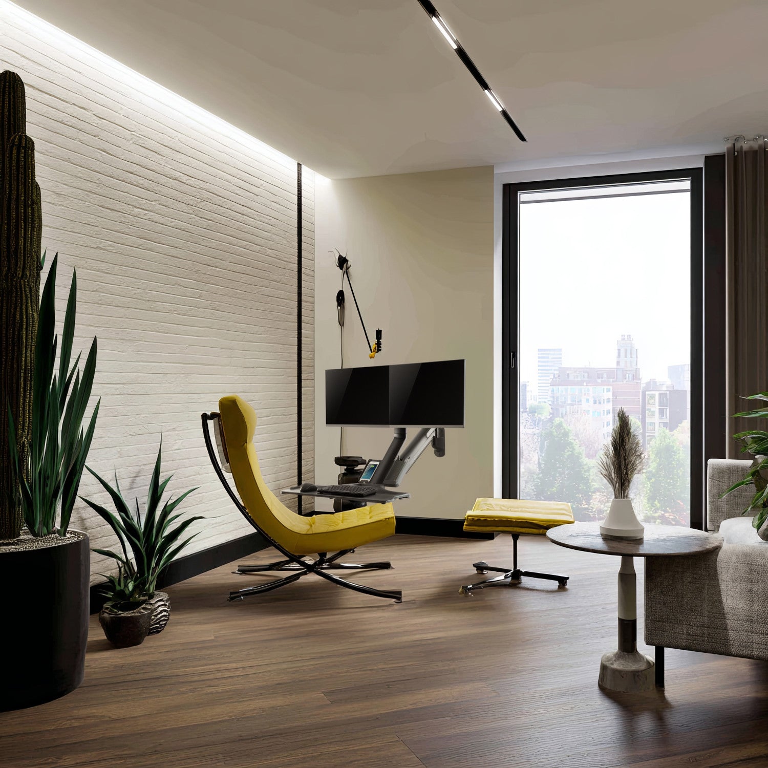 Komponenty držiaka sú dokonale zladené, poskytujú stabilnú a bezpečnú podporu pre da monitory a klávesnicu. Zmena polohy zo sedu na stoj poskytuje veľké pohodlie pri práci a optimalizuje ergonómiu.