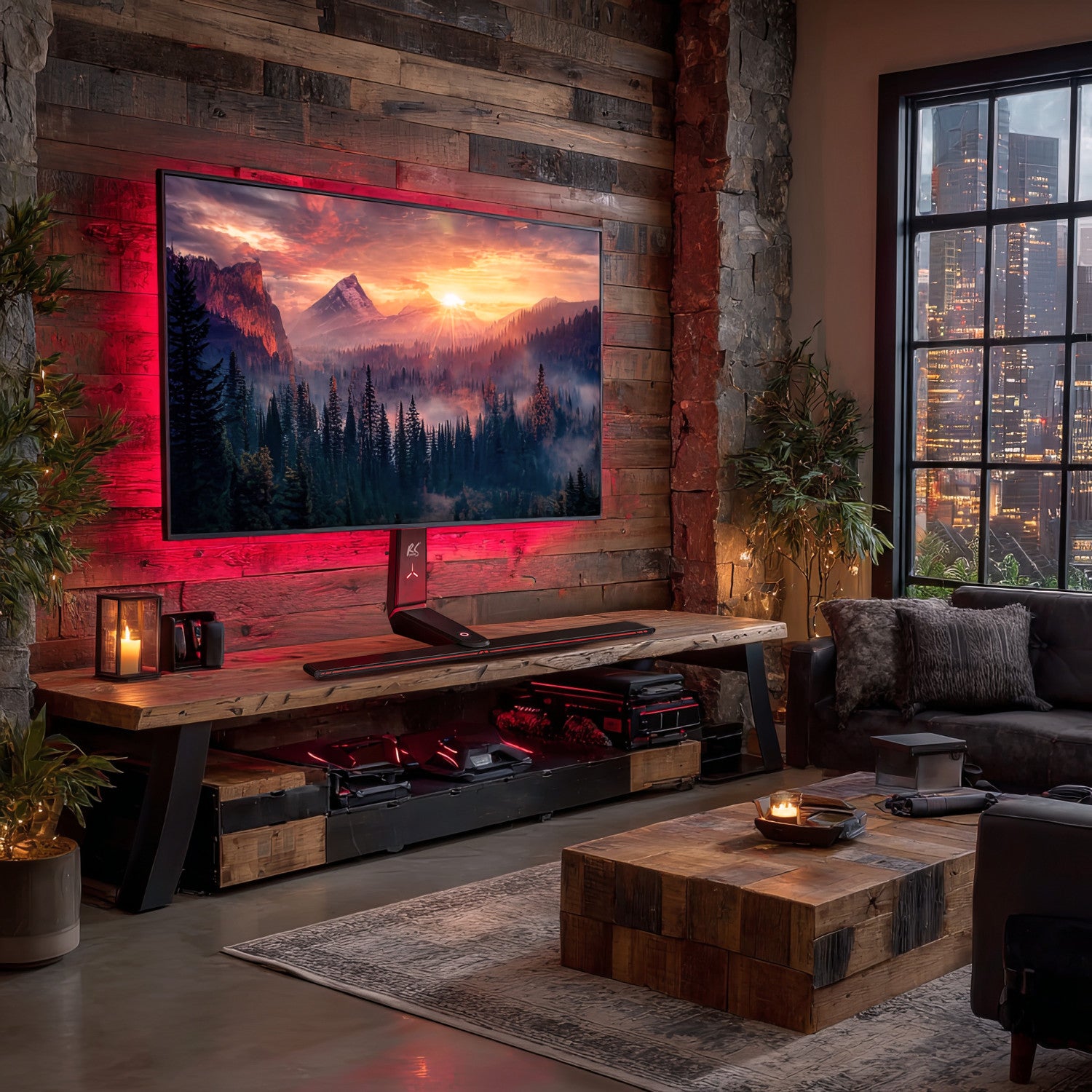 - Tri zóny podsvietenia LED: vertikálny panel, horizontálny pruh a trojramenný svetelný motív