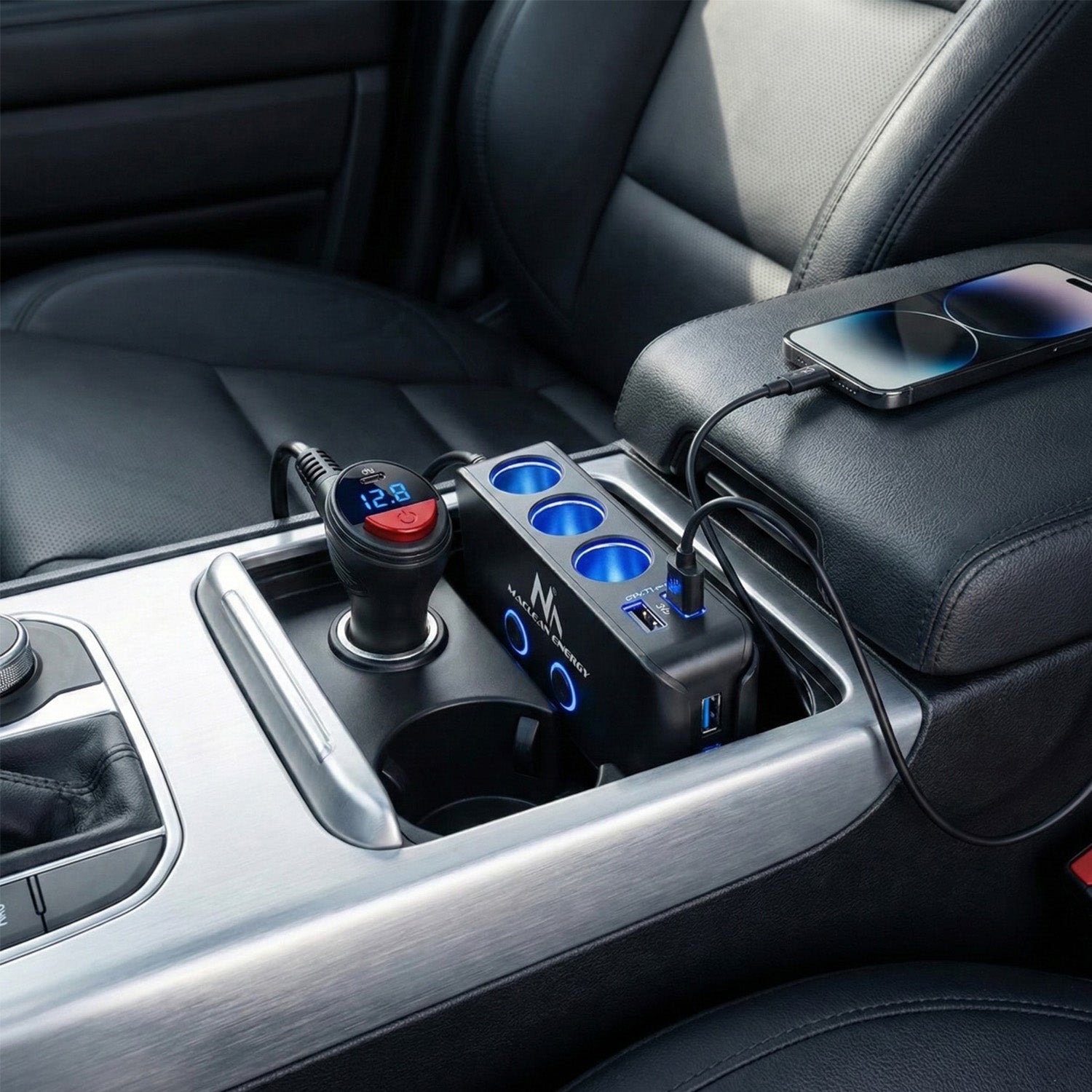 Rozdeľovač zásuviek zapaľovača, voltmeter, 3 zásuvky zapaľovača, 1xQuick Charge 3.0, 3xUSB 6,8A, 1x Power Delivery 18W, Maclean MCE218, Max 120W
