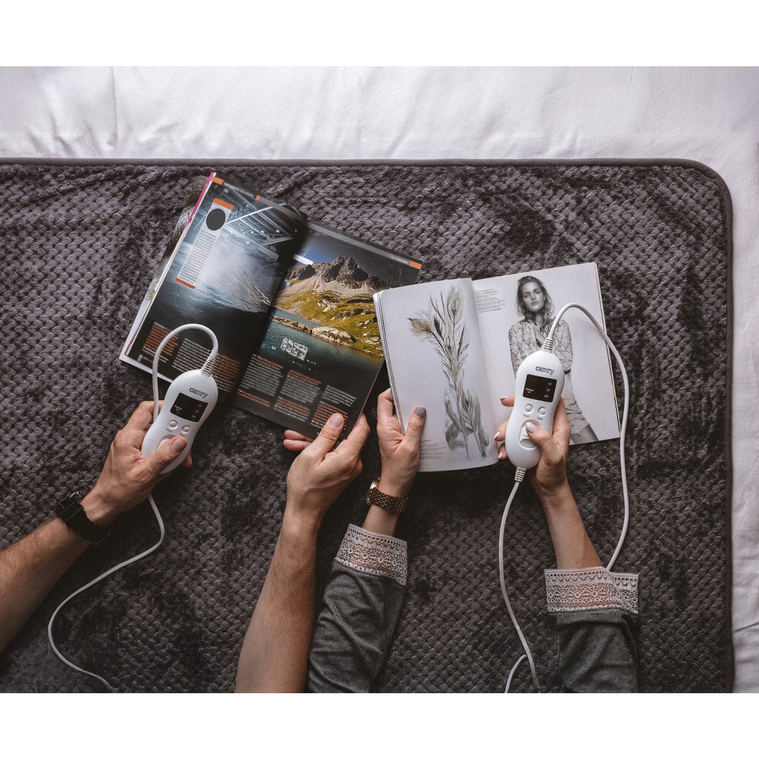 Elektrická deka Camry, pre 2 osoby, rozmery 150x160cm, 8 stupňov vyhrievania, výkon 2 x 60W, sivá, CR 7417