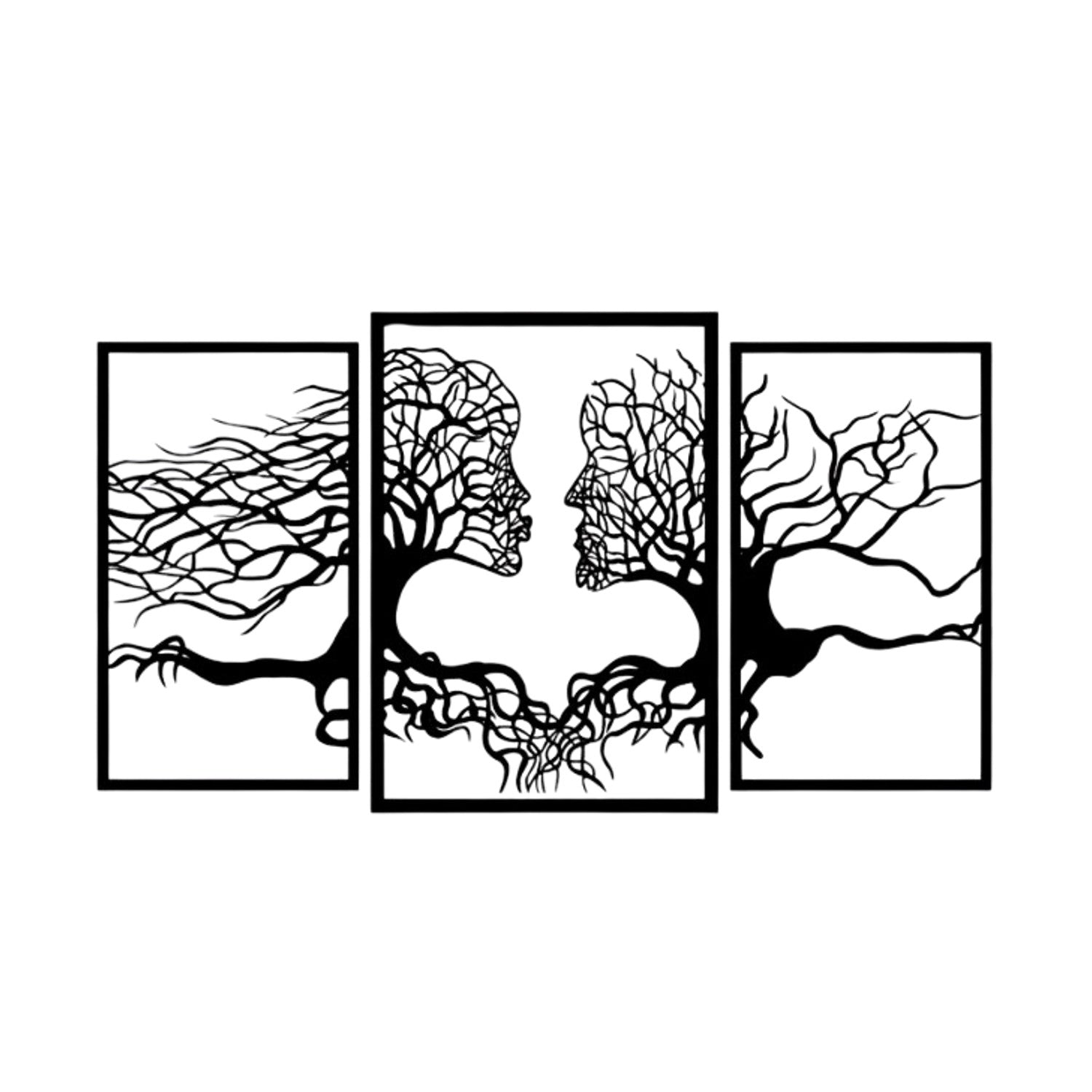 Eyoka ažurový obraz, 3D dekorácia na stenu, 3D obraz "Tváre zo stromov" 180x100cm Čierna
