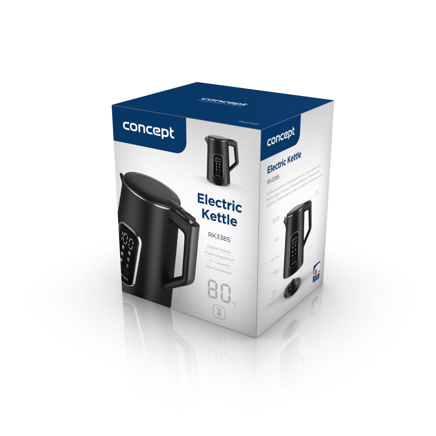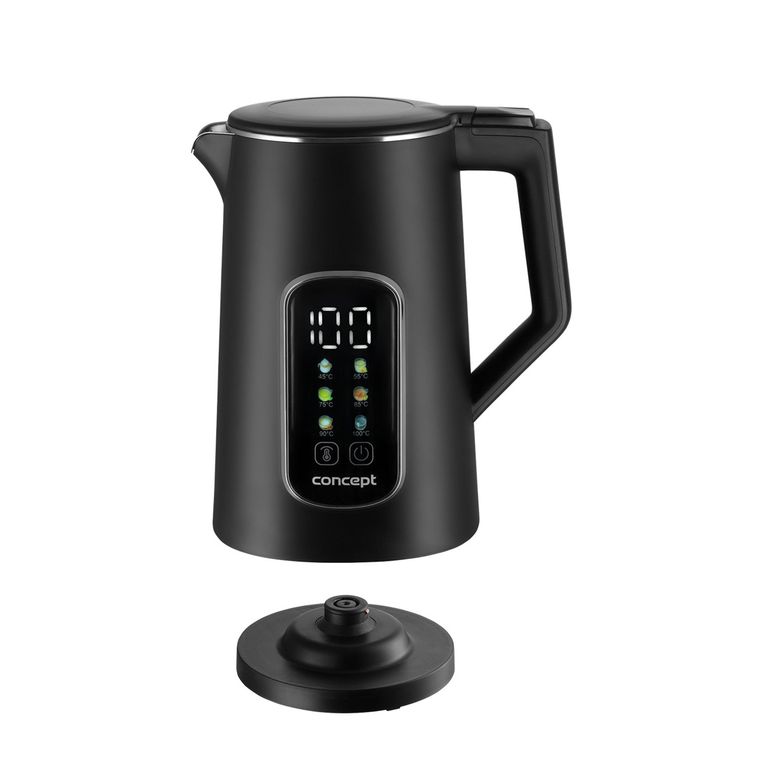Rýchlovarná kanvica Concept, 1,7 l, regulácia teploty, LED displej, povrch Cool touch, ukazovateľ hladiny vody, RK3385