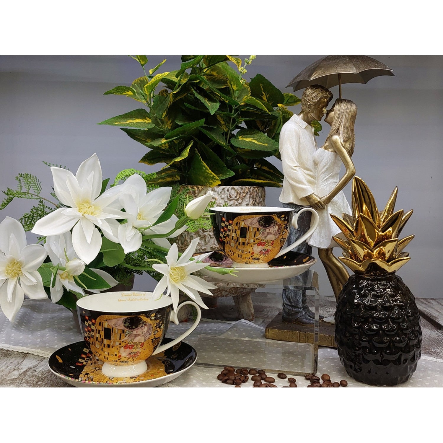 Súprava 2 porcelánových šálok Queen Isabell, motív Klimtovho bozku, 250 ml, W8KL356-22383