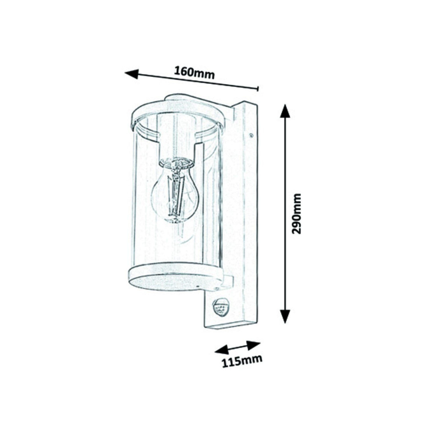 Vonkajšie nástenné svietidlo Silistra s detektorom pohybu sa vďaka svojmu industriálnemu štýlu dokonale hodí do mnohých moderných budov. Hliníkové telo svietidla antracitovej farby dopĺňa valcovitý difúzor z číreho skla, ktorý umožňuje vidieť svetelný zdroj vo vnútri svietidla. Svietidlo Silistra má dekoratívnu podlhovastú štvorcovú základňu, vďaka ktorej ho možno ľahko inštalovať na terasu alebo na vonkajšiu stenu domu. Do svietidla možno umiestniť svetelný zdroj s výkonom do 60 W so závitom E27. Snímač detekuje pohyb vo vzdialenosti 1 až 12 metrov a pod uhlom 110°. Svietidlo spĺňa normu IP44, t. j. je chránené proti vniknutiu predmetov s priemerom do 1 mm a proti striekajúcej vode zo všetkých strán. Rozmery vonkajšieho svietidla sú nasledovné: šírka 115 mm, výška 290 mm, vzdialenosť od steny 160 mm.