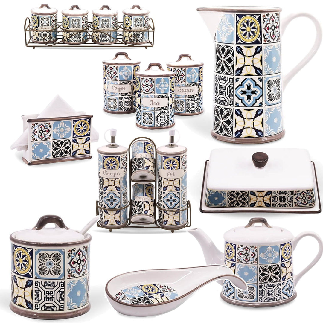 Keramická cukornička Holiday in Porto Maestro, objem 300 ml, sada obsahuje - keramickú lyžičku, MR-20005-09 + keramickú misku na maslo Holiday in Porto Maestro, MR-20005-45