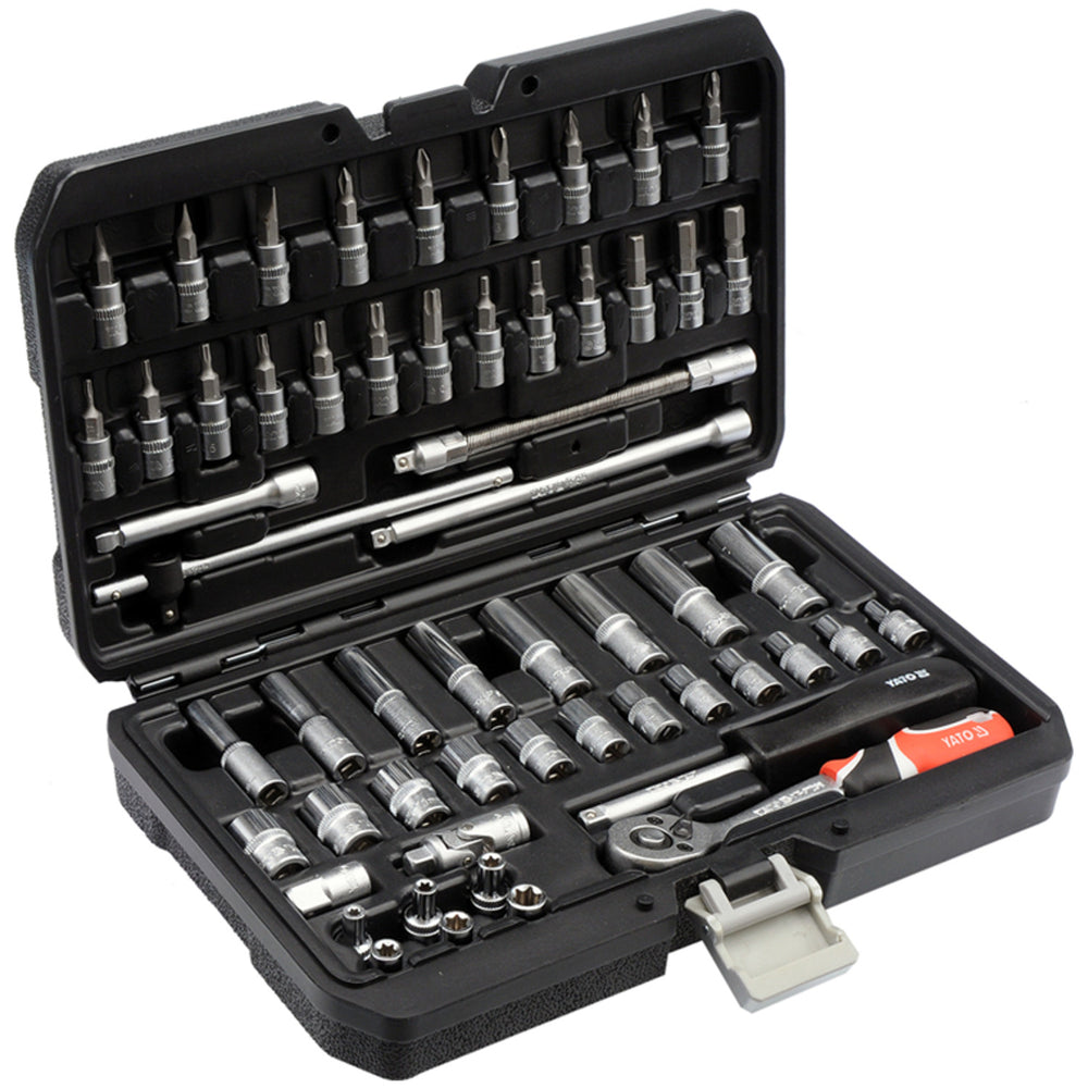 Profesionálna sada náradia Yato, nástrčné kľúče a nástrčné hlavice, vyrobené z chróm-vanádiovej ocele, 56 dielov, nástrčné hlavice so systémom AS-Drive, v kufríku, YT-14501