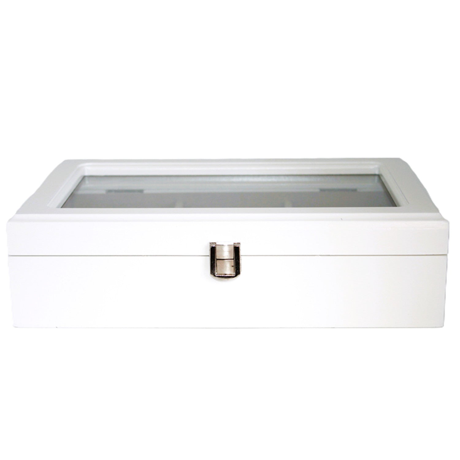 Šperkovnica, drevená, biela, organizér, priehradky, sklenené veko, Queen Isabel
