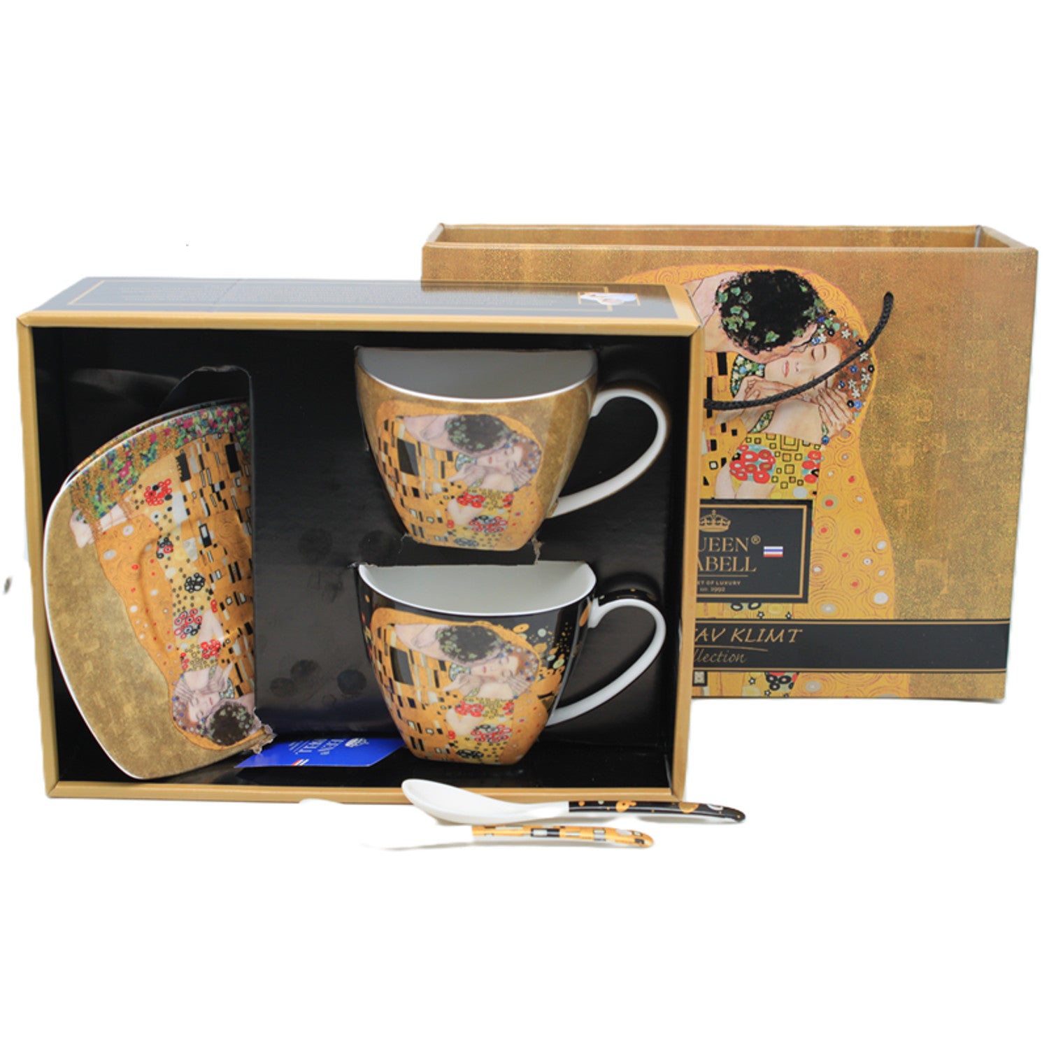 Súprava 2 porcelánových šálok Queen Isabell, motív Klimtovho bozku, čajové lyžičky, 250 ml, W25KL60-2-19000