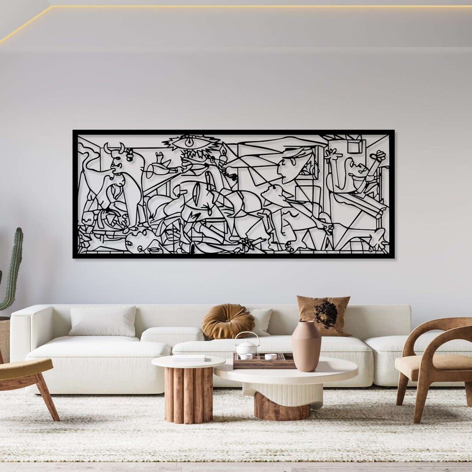 Aranžérsky obraz, 3D dekorácia na stenu, 3D obraz "Guernica, Pablo Picasso" 100x40cm čierna