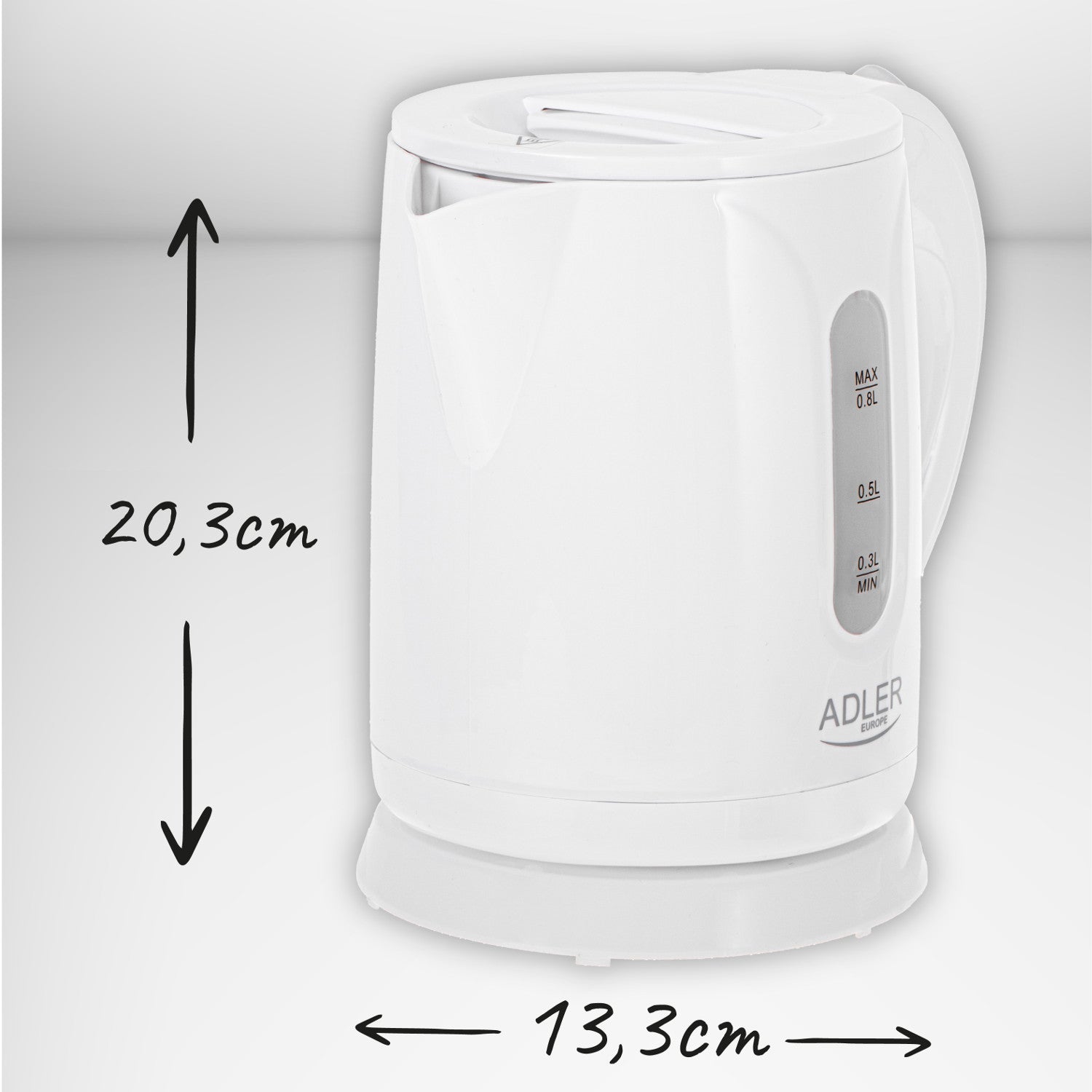 - Plastová rýchlovarná kanvica Adler AD1371w 0,8 l