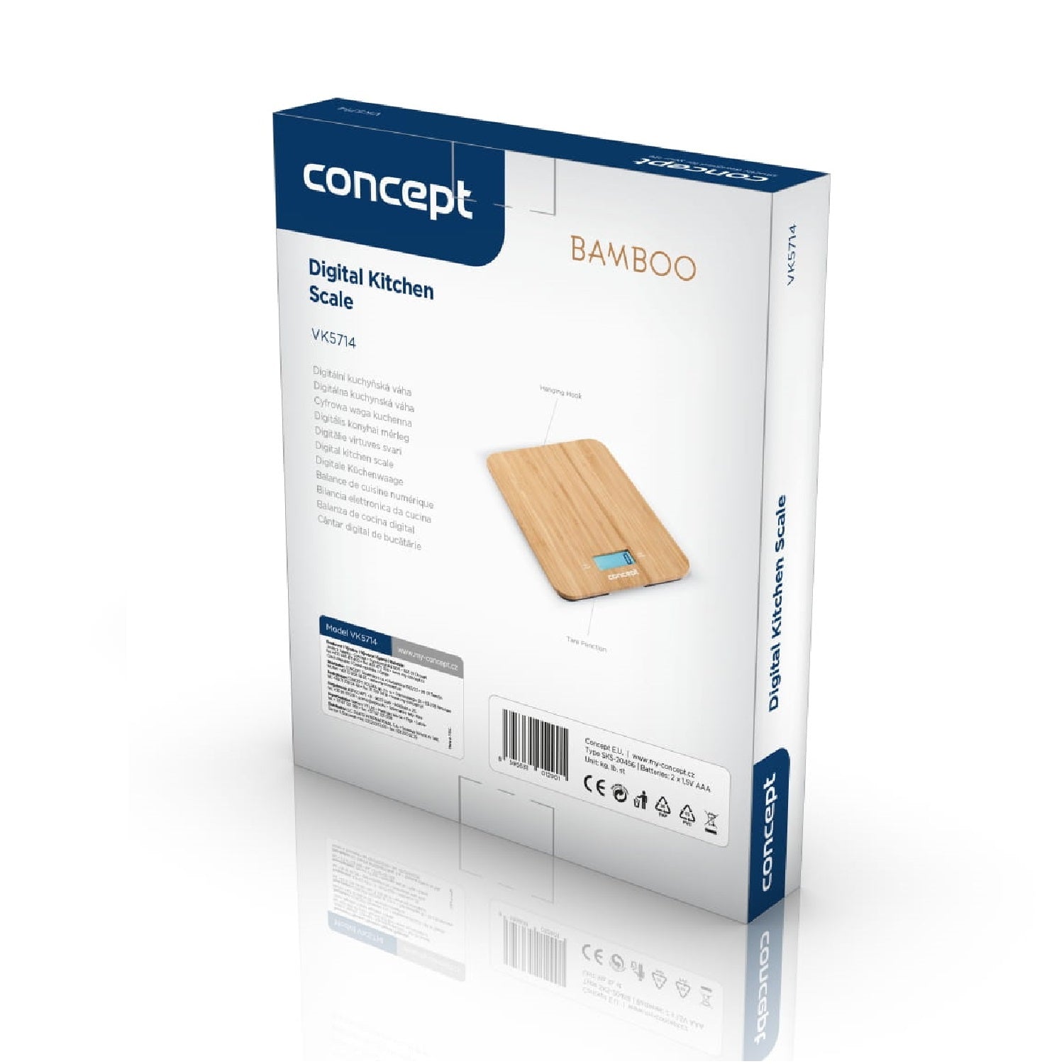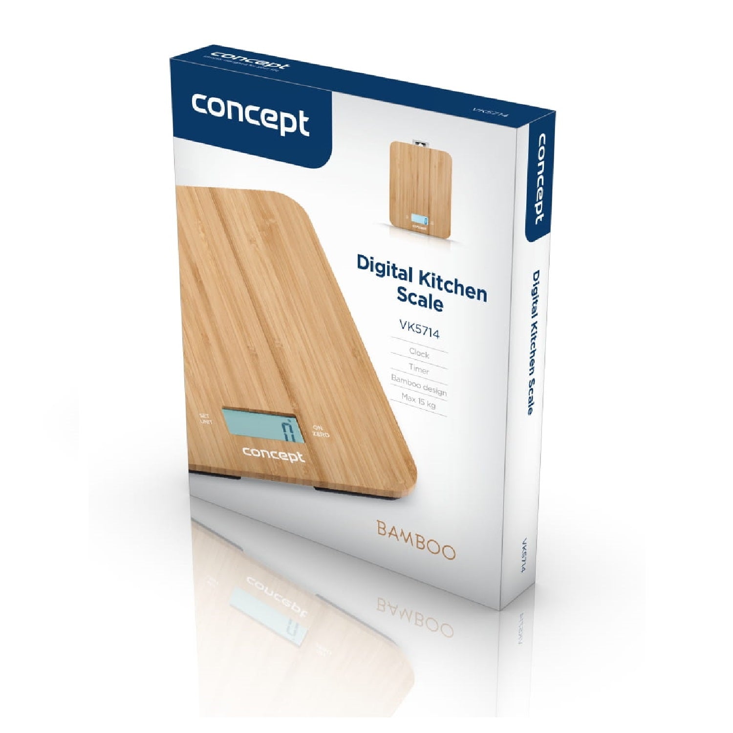 Concept VK5713 Digitálna kuchynská váha - bambus - 15 kg Časovač hodín Bambusový dizajn max. 15 kg s háčikom na zavesenie