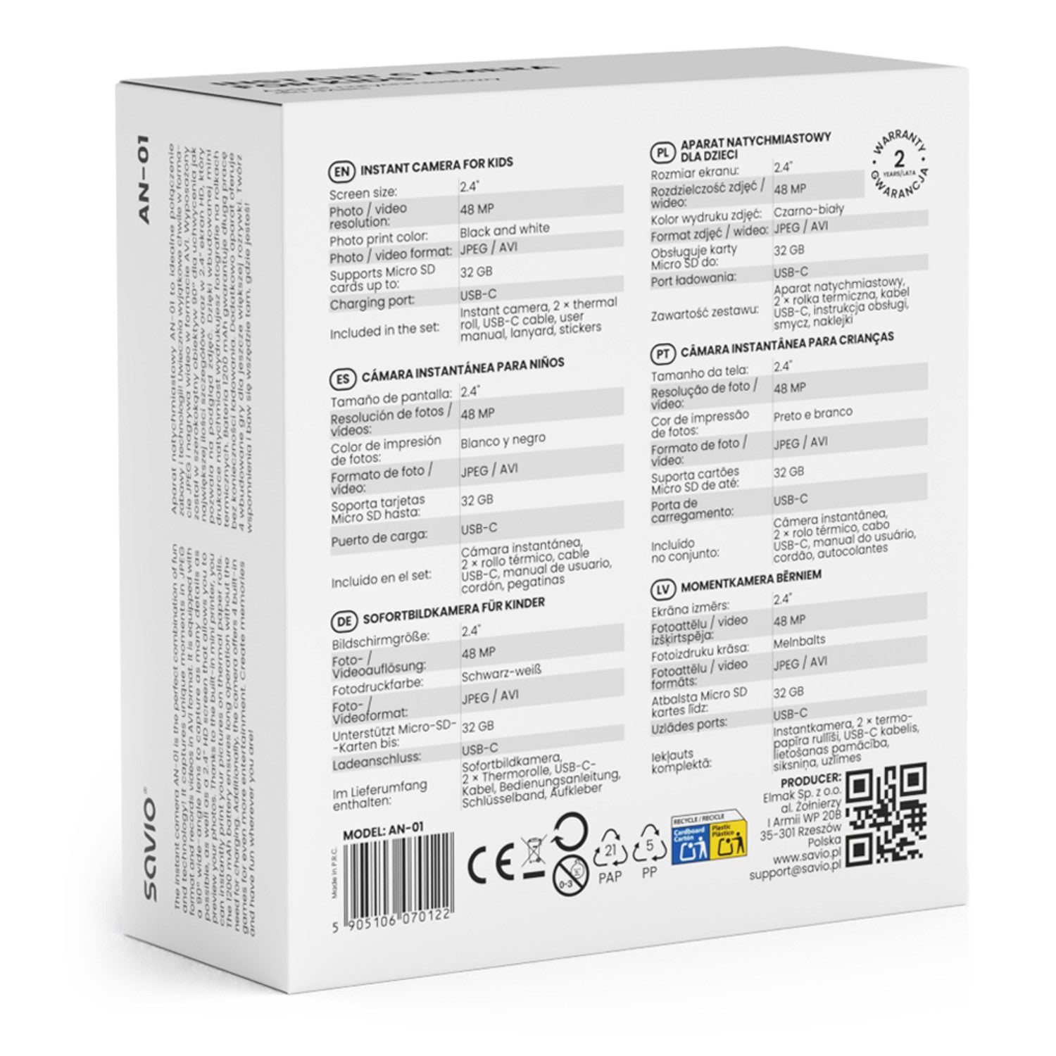 Detský fotoaparát Savio, rozlíšenie 48 MP, 2,4'' obrazovka, 2 termálne rolky, SAVAN-01