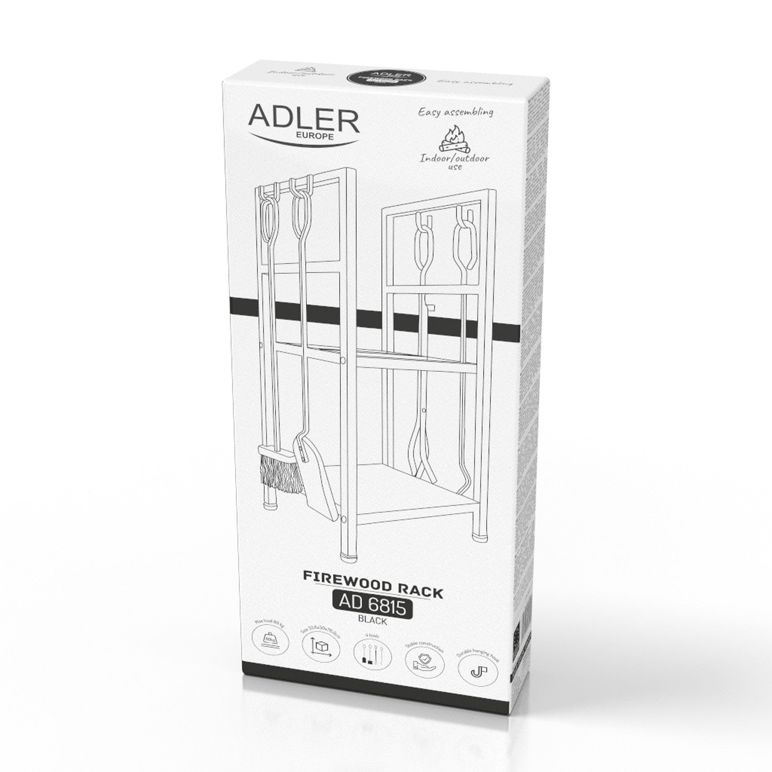 Model AD 6815 je vybavený dvoma praktickými policami, ktoré umožňujú pohodlne ukladať palivové drevo, podpaľovače a ďalšie príslušenstvo potrebné na podpaľovanie. Okrem toho súprava obsahuje 4 krbové nástroje - pohrabáč, kefu, špachtľu a kliešte - ktoré vám pomôžu pri každodennom používaní krbu a udržia priestor okolo krbu v čistote.