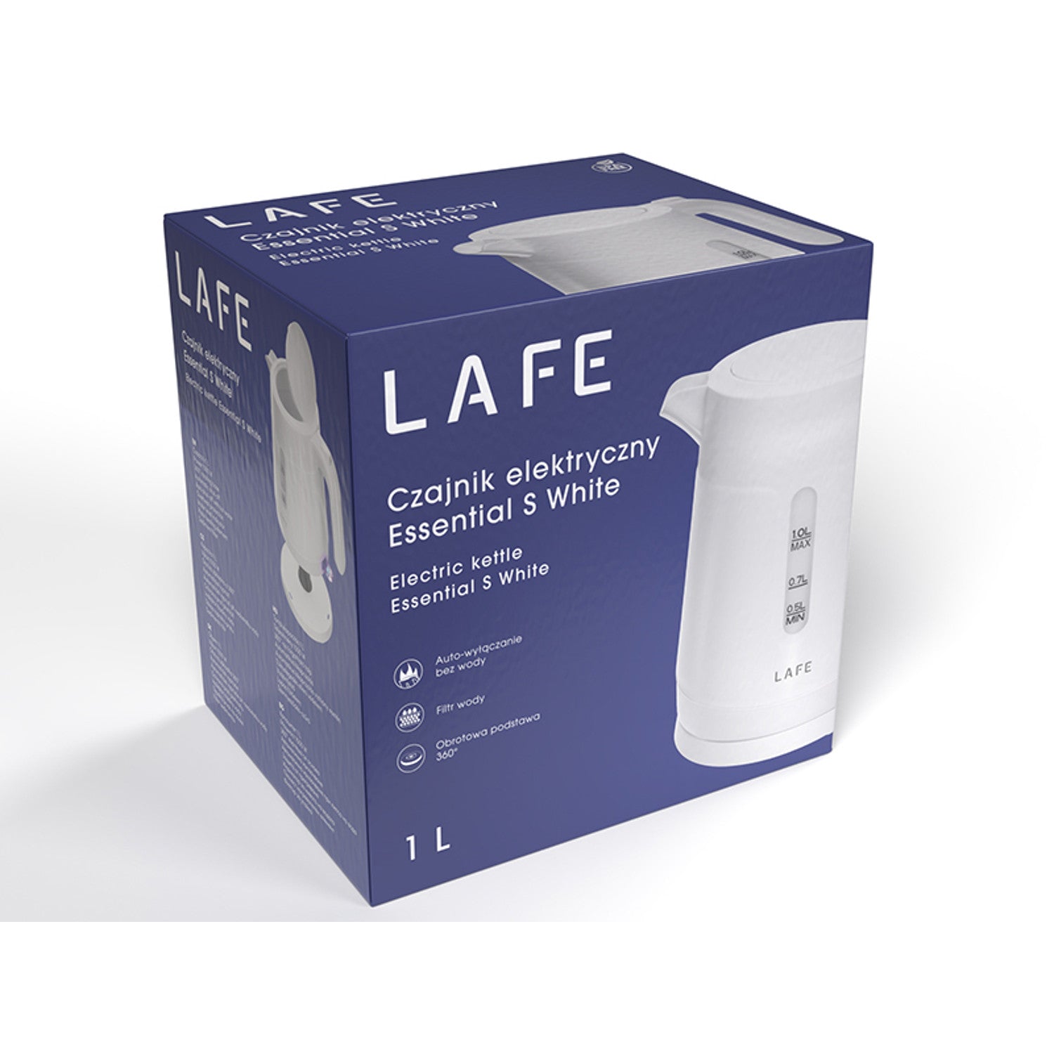 Rýchlovarná kanvica Lafe, objem 1 l, príkon 1500 W, biela, Essential S