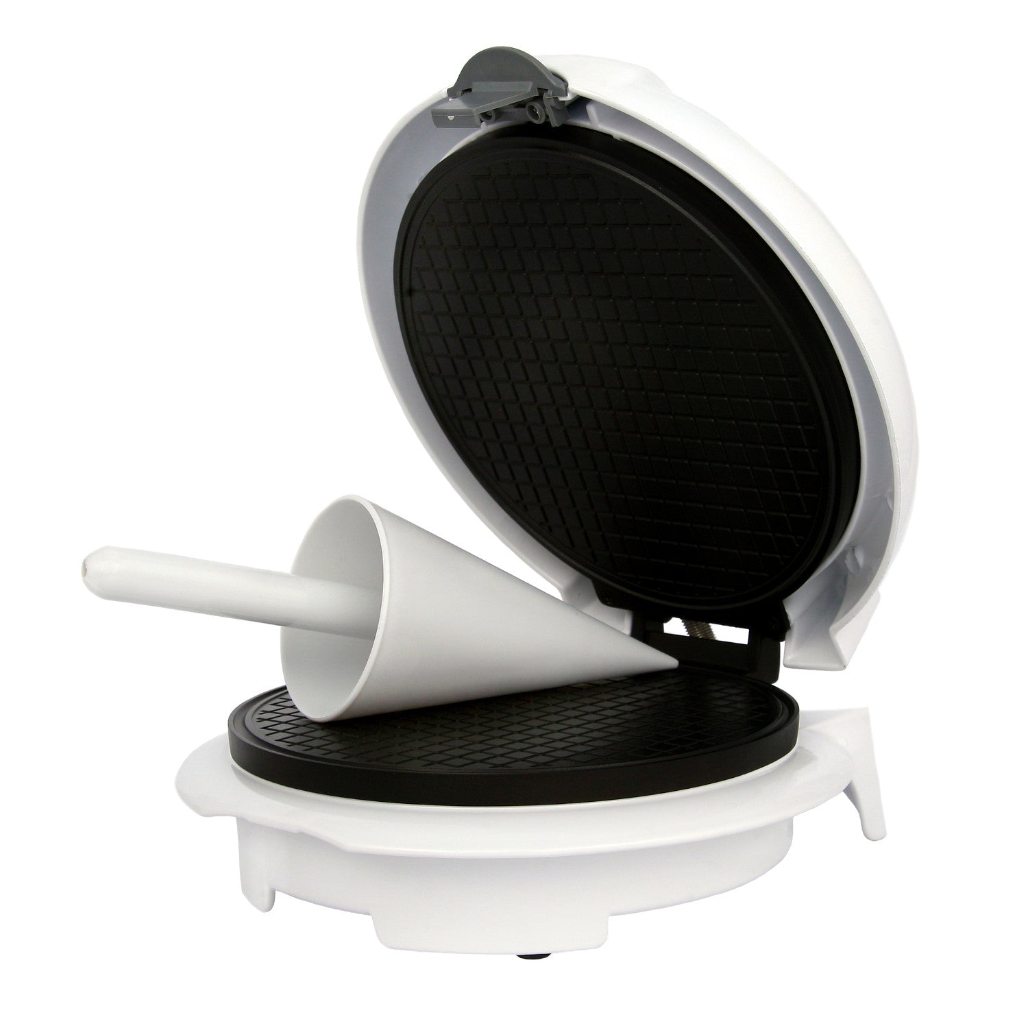 Vaflovač je zariadenie, s ktorým rýchlo pripravíte chutné trubičky, kornútiky a misky na zmrzlinu alebo dezerty s ovocím a šľahačkou. Stačí nájsť ideálny recept na vafľové cesto a za pár minút vykúzlite sladký prídavok. V súprave nájdete aj tvarovací kužeľ, takže svoj dezert môžete v okamihu povýšiť na reštauračný pokrm a ohúriť hostí!